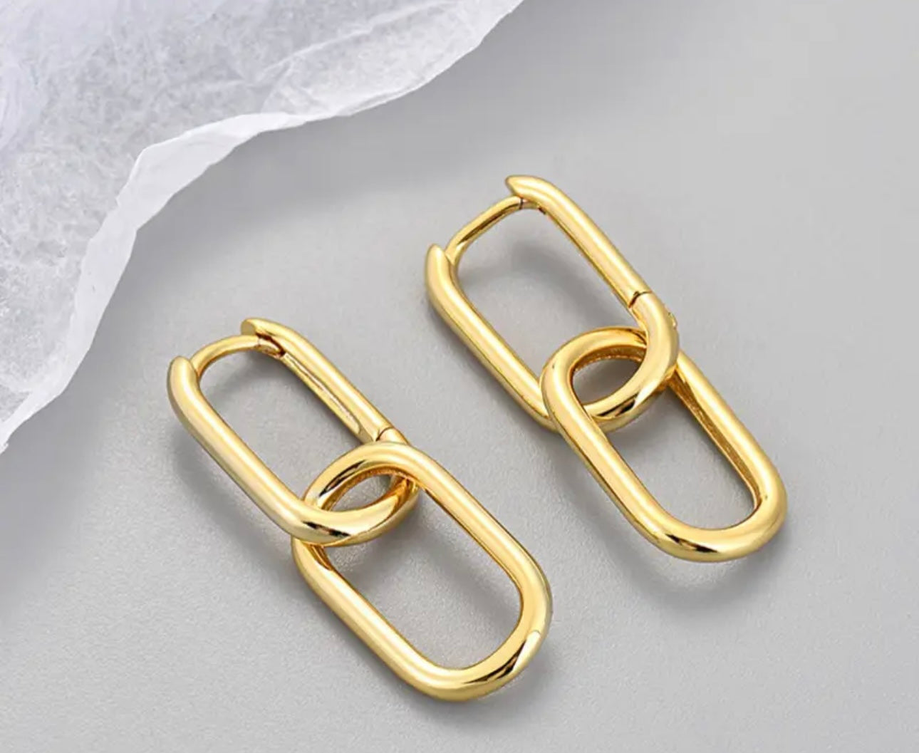 Ready to be dazzling in your double link 18K gold plated geometric earrings