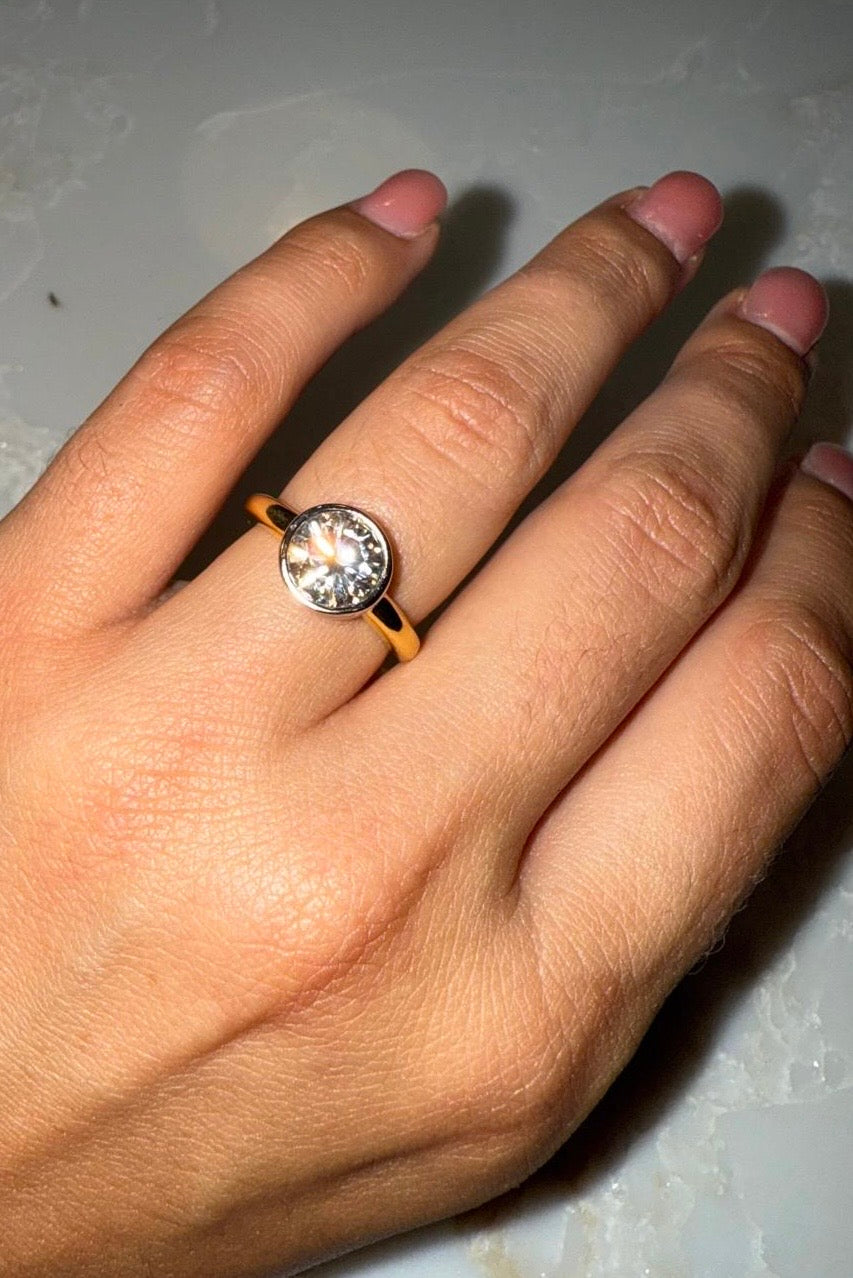 This Ring is for those elegant and understated ladies. 3 Carat Round, Bezel promise, engagement ring. Even your jeweler will struggle to tell