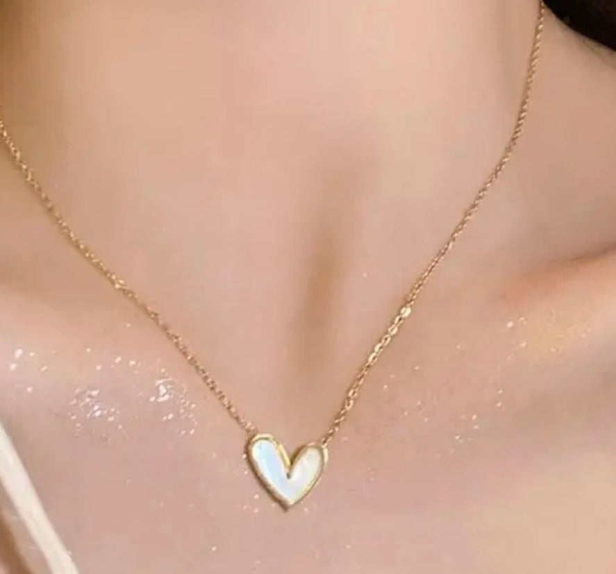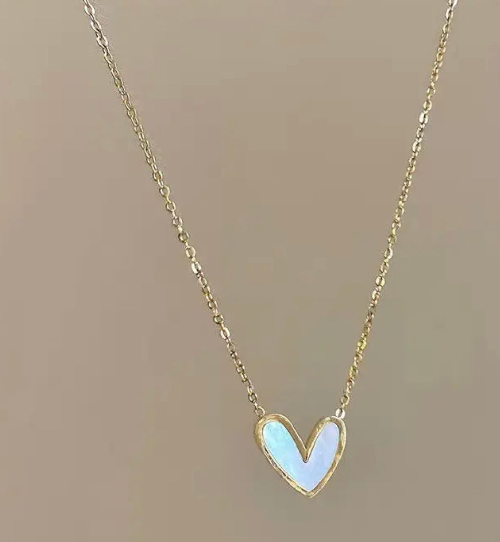 Heart this pendant necklace with faux mother of pearl. Beautiful on any neckline and for any occasion.