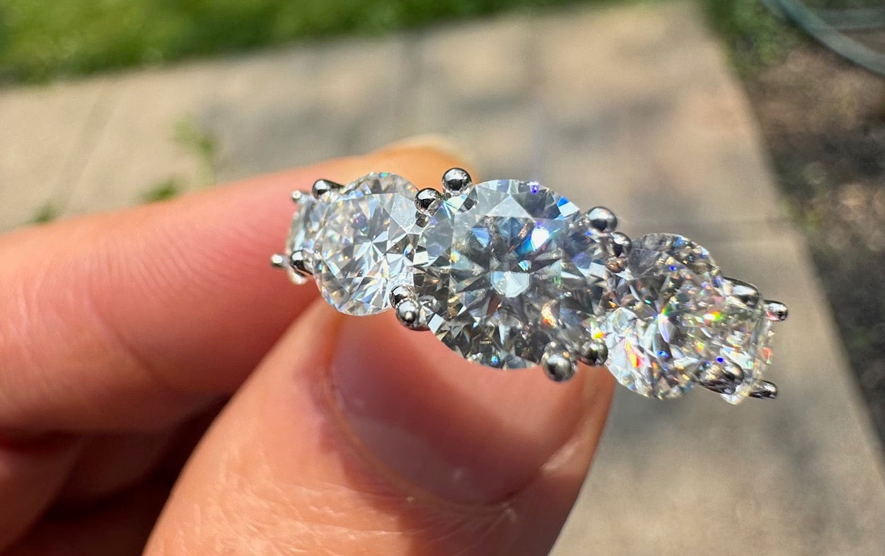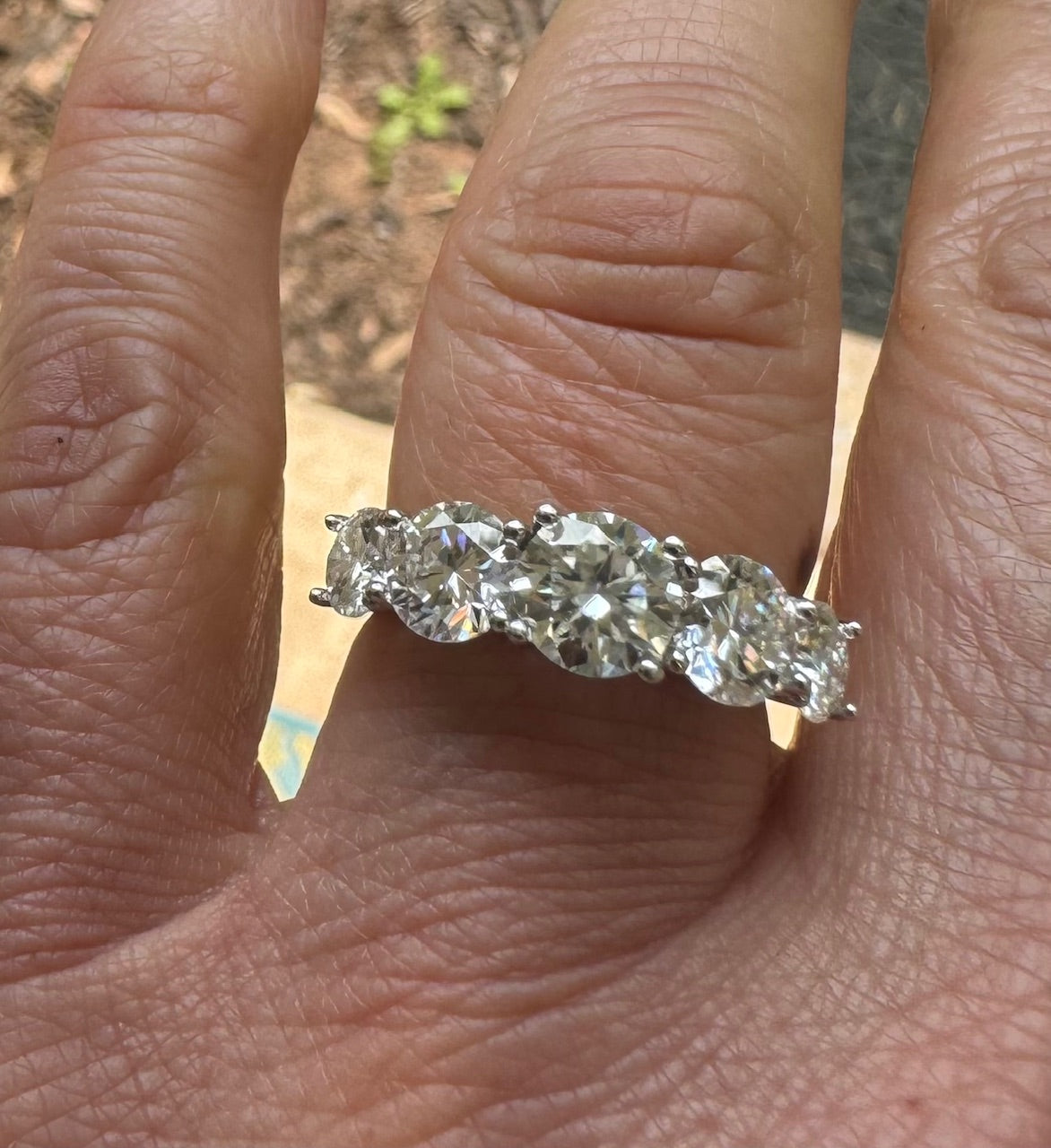 A real Spoiler 3.6 Carat of Moissanite 5 stone Anniversary band. Love on her with this Ring and she will Love on you and shower you with kisses.