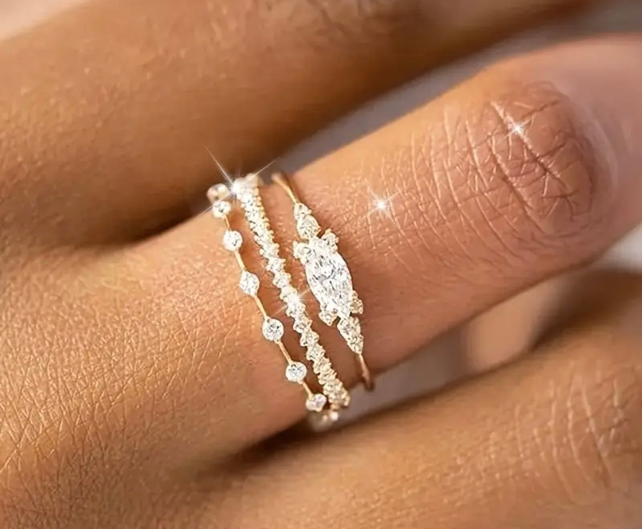 Get yourself all beautiful and elegant in this vintage glamorous 18K gold plated over copper 3 piece stacking rings, just WOW